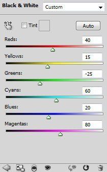 Редактируем маску корректирующего слоя Black and White (Черно-белый):
