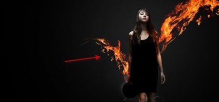 Шаг 3. Теперь мы можем добавить огненных эффектов вокруг модели, чтобы композиция была более сверхъестественной. Загружаем в Фотошоп изображение Fire 1 и используем Lasso Tool