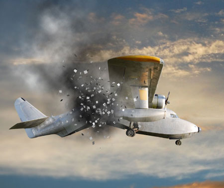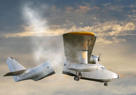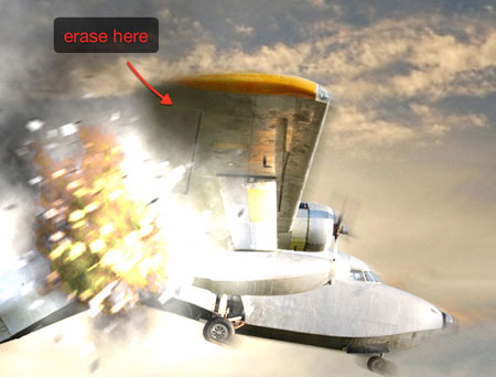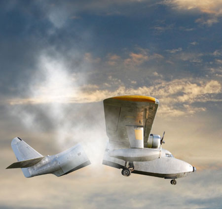 Время для интересной фотоманипуляции. Нашей целью является сцена со взрывом, и первым делом мы должны разломать Аэроплан пополам. С помощью инструмента Pen Tool