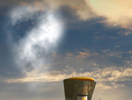 Для начала создайте новый слой. Выберите инструмент Polygonal Lasso Tool (L) (Инструмент "Лассо"),установите растушевку на 30 пикселей. Создайте выделение неподалеку от самолета, форма произвольная.