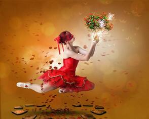 Найдите несколько стоковых фото листьев, разместите их в изображении близко к главному объекту – в нашем случае это девушка. Учитывайте перспективу и глубину.