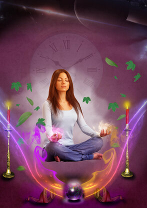 Мы должны еще поработать с фоном, сделать его более интригующим. Сперва , нужно добавить светлое пятно позади девушки. Для этого создайте новый слой, расположите его ниже слоя с медитирующей девушкой, круглой мягкой кистью (brush)
