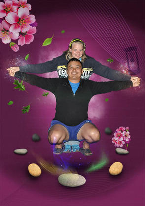 Разместите камни под девушкой, учитывая перспективу и их отдаленность. Создайте тени под камнями, так как мы это делали с тенью от девушки (мягкая круглая черная кисть – brush, Свободная трансформация – Free Transform для сплющивания).