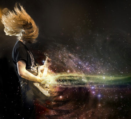 К счастью, задний фон за волосами гитариста уже выглядит хорошо по отношению к нашему заднему фону, поэтому дополнительное использование выделение волос не потребуется. Это весьма практично, т.к. выделение волос – довольно-таки трудоёмкая работа!