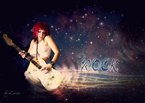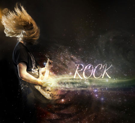 ШАГ 17. На новом слое, напечатайте слово ‘ROCK’, используя текст белого оттенка, просто поверх световых линий в освещённой области.
