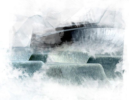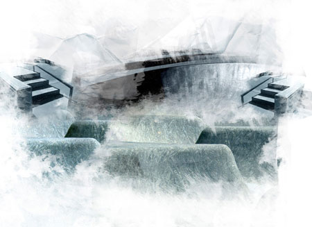К слою ‘circle ramp’ добавьте слой-маску, а затем на слой- маске с помощью чёрной кисти и акварельных кистей из набора, скройте большую часть изображения. Большую часть изображения вы можете обработать в стиле гранж, но заднюю стенку сохраните, чтобы создать общую структуру вашей композиции: