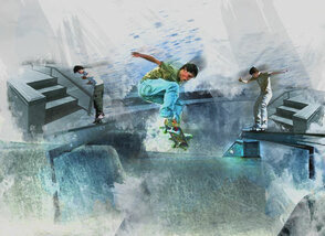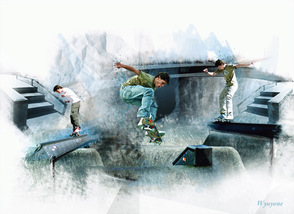 Повторите эту же технику, ещё раз используя скаты скейтпарка, но уже в правой части документа: