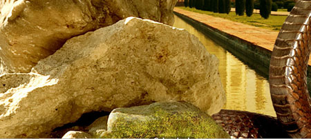 Нам нужно протянуть хвост кобры в левый угол нашего изображения, для этого, просто скопируйте / вклейте часть змеи оригинального изображения, расположив скопированную часть хвоста в нижней части угла. Примените те же самые корректирующие слои для аналогичного совмещения с задним фоном.