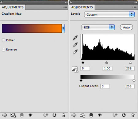 Настройки для корректирующего слоя Карта Градиента (Gradient Map):