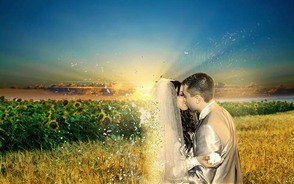 Шаг 1. Так как стоковое изображение пары было не очень большим, я был вынужден использовать размер изображения 1200×768, который для меня слишком мал, особенно для работ, которые идут на распечатку. Создайте свой документ и вставьте в него фон, подогнав его размер так, чтоб он вписывался в наш документ.