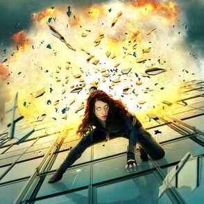 Откройте стоковое изображение Взрыва 1. Переместите изображение на наш документ, масштабируйте изображение и примените трансформацию, чтобы совместить направление взрыва с направлением здания: