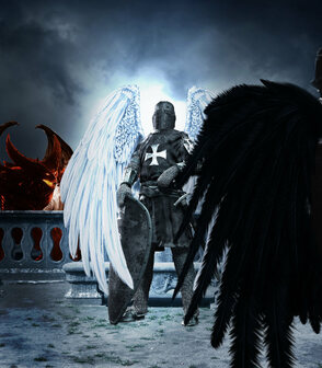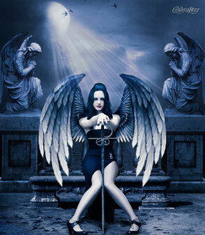 Также как и с коррекцией с девушкой, я провёл коррекцию крыльев. Я использовал корректирующий слой Уровни (Levels), чтобы крылья были немного темнее, а также применил корректирующий слой Карта градиента (Gradient Map), режим наложения для данного корректирующего слоя Мягкий свет (Soft light), непрозрачность слоя 80%. Цветовые оттенки для корректирующего слоя Карта градиента (gradient map): #183855 для теней и #558fcb для освещения.
