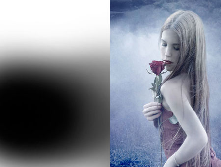 Последний шаг. Создайте новый слой, установите режим наложения Мягкий свет (Soft Light), непрозрачность слоя установите 85%. Выберите большую мягкую кисть и нарисуйте виньетку вокруг изображения. На скриншоте ниже, вы можете увидеть, где я применил кисть (белый фон на скриншоте – показан для того, чтобы показать область применения кисти).