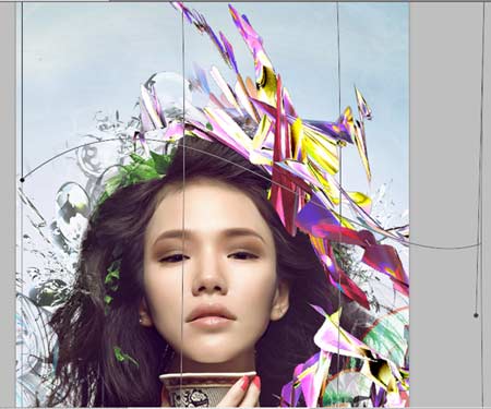Ещё раз активируйте свободную трансформацию (Ctrl+T), затем щёлкните правой кнопкой мыши по документу и в появившемся окне выберите опцию Деформация (Warp). С помощью мыши, создайте красивую кривую над головой модели, как показано на скриншоте ниже.