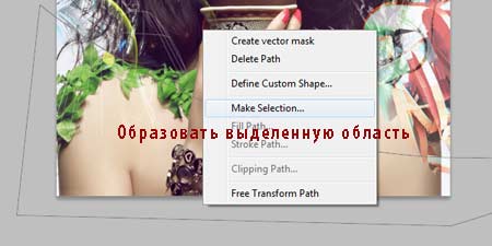 Как только вы создали контур, щёлкните правой кнопкой по созданному контуру и в появившемся окне, выберите опцию Образовать выделенную область (Make Selection), далее, нажмите OK.