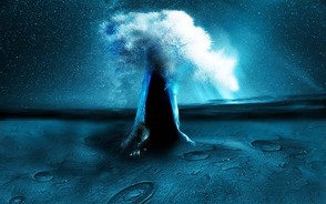 Под слоем "тень крона" создаем новый слой "свечение 1". Берем мягкую круглую кисть (нажим: 50), устанавливаем цвет # b4f0fd, размер кисти 700-600. Делаем один клик в центральной области ветки. Идем "Фильтр-размытие-размытие по Гауссу - радиус 3,5". Непрозрачность слоя: 50.