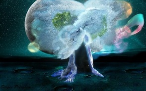 Формируем крону дерева. Открываем изображение "Белое дерево". Переходим в закладку "Каналы". Используя этот урок, вырезаем крону дерева. Перемещаем белую крону в наш коллаж.