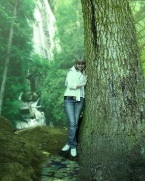 Далее, к заднему фону добавьте изображение с водопадом и деревьями. Поменяйте режим наложения для слоя с водопадом на Осветление (Screen) и к данному изображению примените фильтр Размытие по Гауссу (Gaussian Blur), чтобы получить результат, как на скриншоте ниже. К изображению с водопадом я применил достаточно большое размытие по Гауссу, поэтому, на скриншоте ниже, вы можете увидеть разницу, но уровень размытия вы можете использовать и меньше.