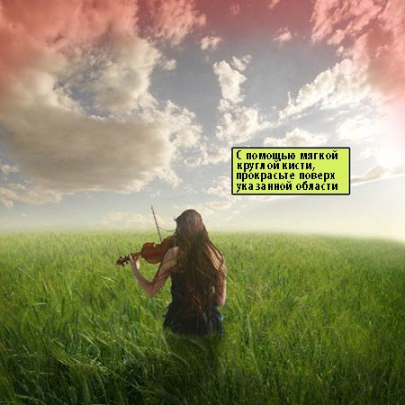 Примечание переводчика: 1. цвет кисти, установите чёрный. 2. Новый слой расположите ниже слоя с девушкой и выше слоя с полем.
