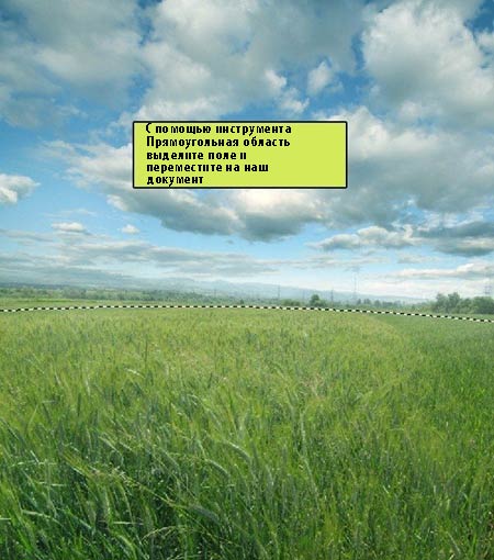 Щёлкните по изображению с Безветренным полем, далее, нажмите клавишу М для активации инструмента Прямоугольная область