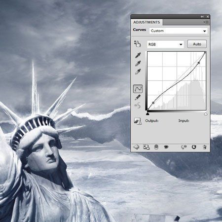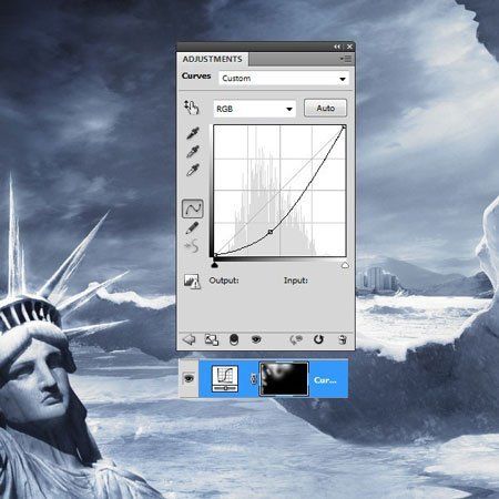 Это последняя часть айсберга. Открываем третье фото и размещаем его после предыдущего. Используем Curves (Кривые), чтобы добавить яркости картинке. Удаляем фон так же, как в предыдущих двух фото.