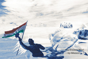 Наша работа почти закончена. Нам осталось добавить текст. Выбираем какой-нибудь минималистичный шрифт и белым цветом пишем The Frozen World. Дублируем текстовый слой (CTRL+J). К копии применяем фильтр Filter - Blur - Motion Blur (Фильтр - Размытие - Размытие в движении) с высоким значением Distance (Расстояние). Если вы считаете, что это много, можете уменьшить параметр.