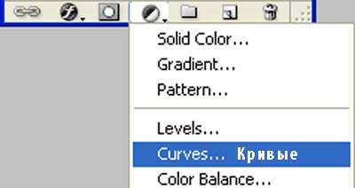 Далее, добавьте корректирующий слой Кривые (Curves), данную коррекцию можно активировать через нижнюю панель настроек в палитре слоёв: