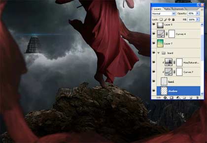 Примечание переводчика: данный корректирующий слой, также используйте в качестве обтравочной маски к изображению со скалой.