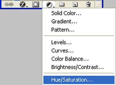 Далее, добавьте корректирующий слой Цветовой тон / Насыщенность (Hue/Saturation), данную коррекцию можно активировать через нижнюю панель настроек в палитре слоёв.