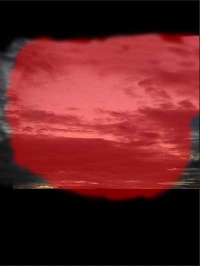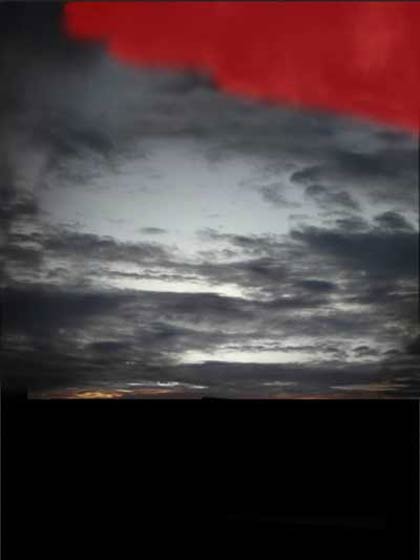 (Brush Tool). Далее, с помощью мягкой круглой кисти чёрного цвета, размер кисти, примерно, 50-60 рх., начните прокрашивать поверх верхней части неба, как показано на скриншоте ниже. (Красный цвет на скриншоте ниже показывает, где вам необходимо прокрашивать кистью).