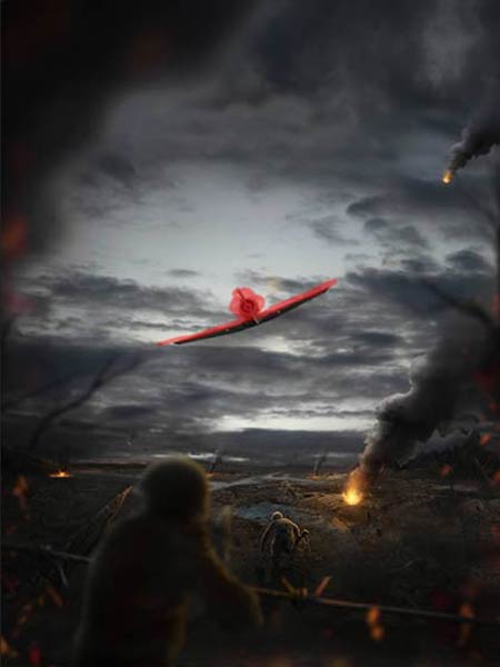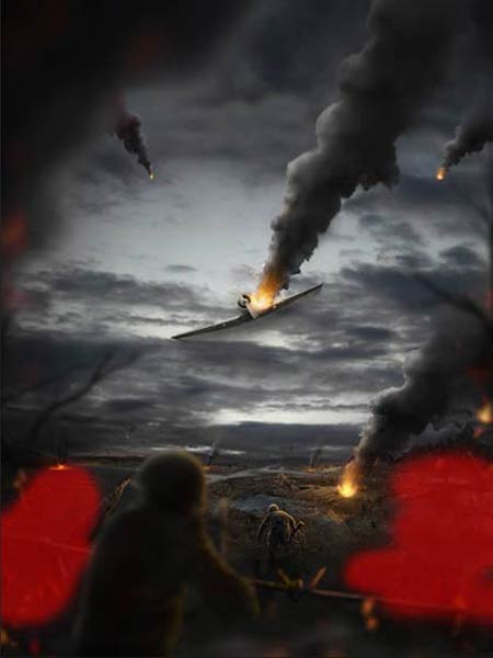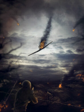 Откройте стоковое изображение “Самолёт”, выделите изображение самолёта, используя ту же самую технику выделения, которую вы применяли при выделении изображений солдат в предыдущих шагах. Переместите выделенное изображение самолёта на наш рабочий документ. Расположите изображение самолёта, как показано на скриншоте ниже.