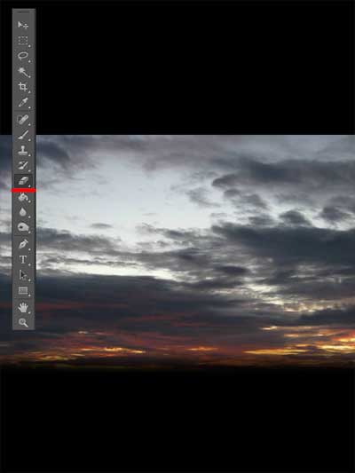 (Erase Tool (E), обработайте участки неба таким образом, чтобы небо выглядело, как на скриншоте ниже.