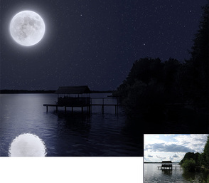 В этом уроке мы превратим дневную фотографию озера в красивую ночную картину.