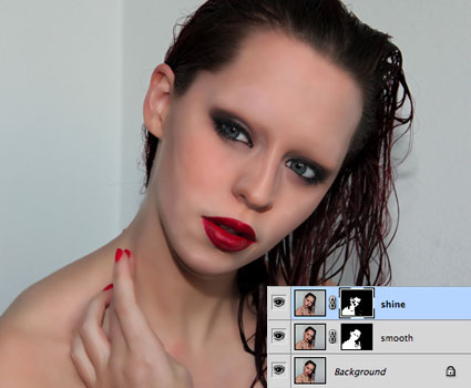 Создайте копию слоя (Ctrl + J), чтобы усилить сияние. После этого объедините оба слоя. Установите Режим наложения на Замену светлым (Lighten).