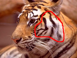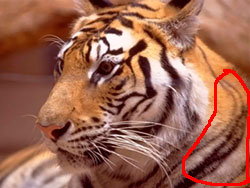 Вырежите с морды тигра кусочик шерсти: