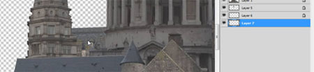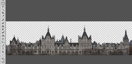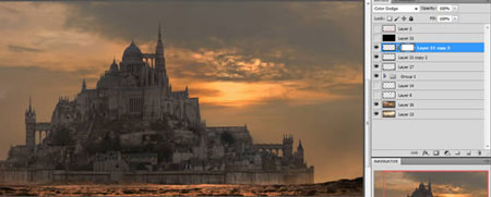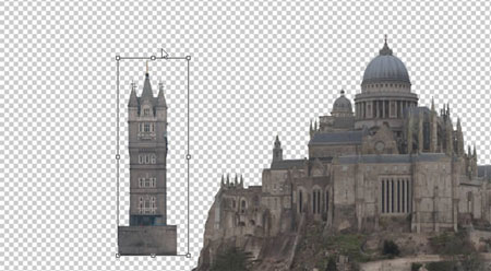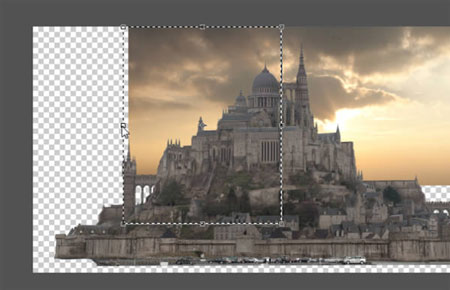 Перемещаем город немного левее и вставляем еще один исходник с замком. Теперь мы добавим здания за стенами города. При коррекции размера исходника, не забывайте о пропорциях.
