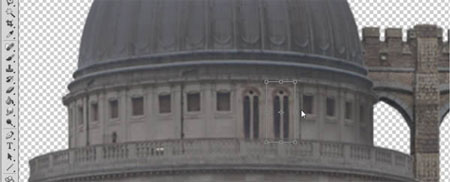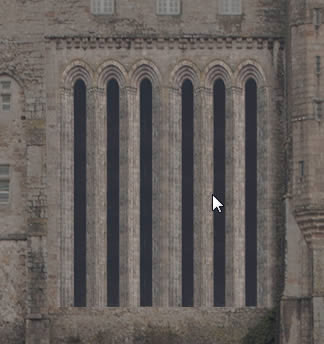 В этой работе мы использовали архитектуру разных периодов истории. Чтобы эти различия были менее заметны, мы скопируем мелкие детали с одних зданий и перенесем их на другие. Выделяем одно из окон башни рядом с куполом.