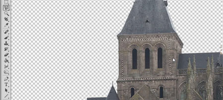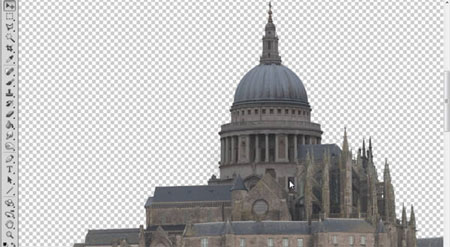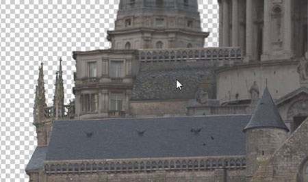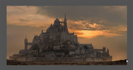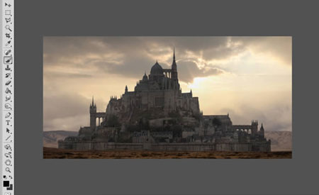 Теперь начинается настоящая работа. Для начала открываем исходник с крепостью Мон-Сен-Мишель, которую мы будем использовать в качестве основы для нашего города. Изображение достаточно большое, поэтому мы будем работать прямо на нем. Если у вас слабый компьютер, попробуйте немного уменьшить размер фотографии.