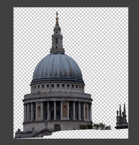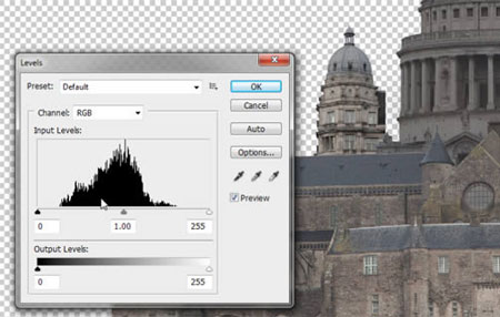 Одного куска здания нам будет достаточно. Вырезаем его и корректируем контрастность/цвет.