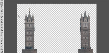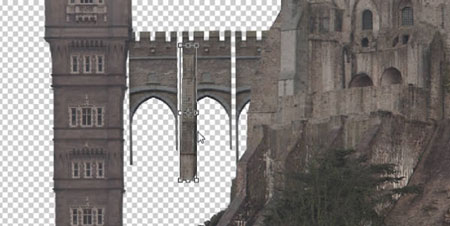 Дублируем башню с мостом, перемещаем ее в правую часть города и отражаем по горизонтали.