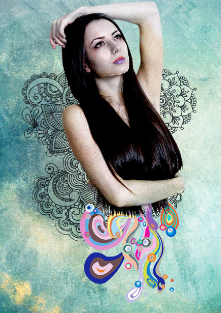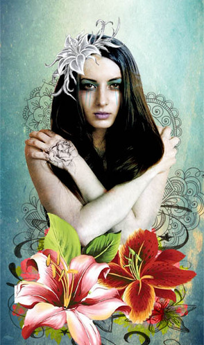 Далее, откройте векторный рисунок Цветок 7 в программе Photoshop. Мы используем векторный рисунок в нашей композиции, поэтому, нам необходимо переместить данный рисунок цветка на наш рабочий документ. Назовите этот слой “Тату”.