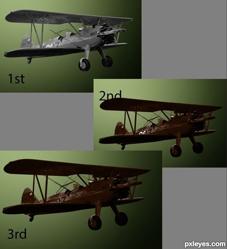 (brush) и рисуйте там, где, по-вашему, свет должен быть боле ярким, в данном случае на верхних частях. Старайтесь во время рисования следовать по линиям самолета. Когда закончите, измените слою режим наложения на Мягкий свет (Soft Light) и понизьте непрозрачность (opacity) до 82%.