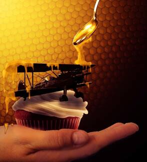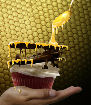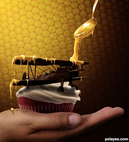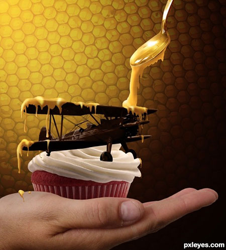 Отметьте, что я не показывал, как сделал стекающий с ложки мед, ведь для этого использовалась та же техника, что и для меда на шоколадном самолетике.