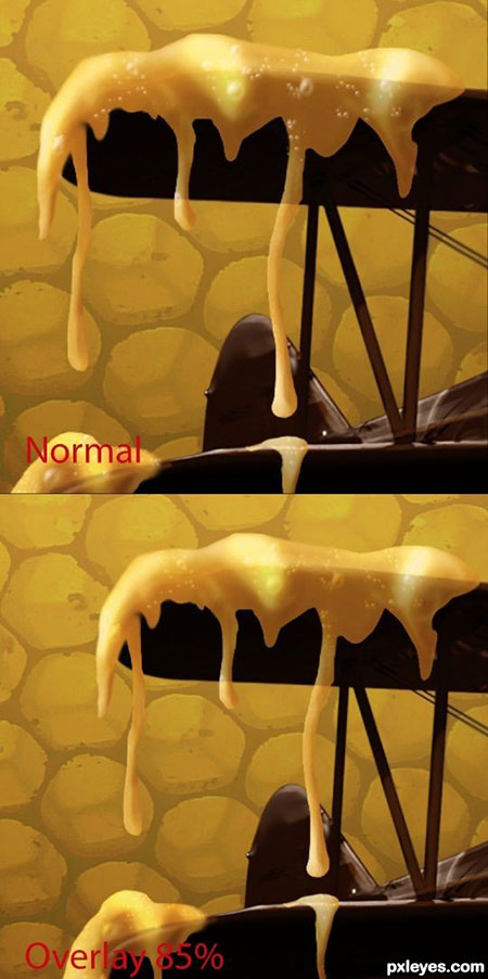 Вот результат. Заметьте, что я убрал некоторые капли меда с винта, будто они стекают за пропеллером самолета.