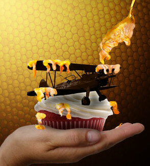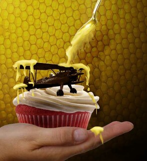 Аккуратно поместите самолет на верхушку пирожного. Используйте маску слоя