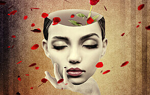 Создайте выделение вокруг изображения розы, скопируйте / переместите скопированное изображение розы на наш рабочий документ. С помощью слой-маски, скройте лишние участки розы, создав ощущение, что роза расположена внутри головы:
