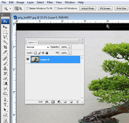 Откройте изображение Bonsai. В панели слоев кликните дважды по значку блокировки слоя рядом с его миниатюрой, в появившемся диалоговом окне нажмите Ок.