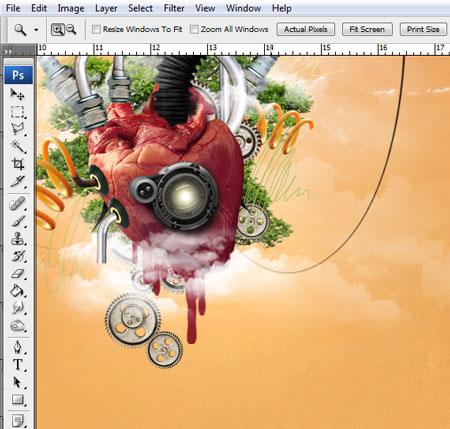 В этом уроке мы будем создавать дизайн, основанный на концепции стиля стимпанк, но с несколько иным подходом. Вместо ржавчины и эффекта старины мы будем использовать более чистые и сияющие элементы. Мы также будем использовать природные элементы, векторные элементы и некоторые кисти.