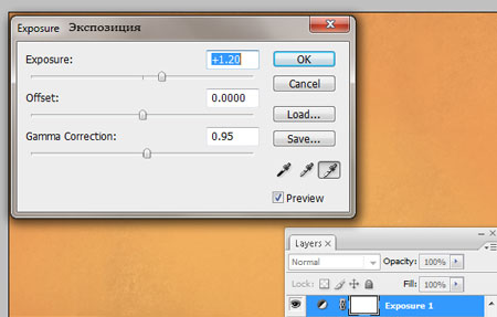 (Brush) (B) и закрасьте черным края, чтобы сделать плавный переход. То же самое проделайте со второй копией. Затем перейдите в меню Слой (Layer)>Новый корректирующий слой (New Adjustments Layer) и добавьте следующие корректирующие слои: Яркость/Контраст (Brightness/Contrast), Карта Градиента (Gradient Map) и Экспозиция (Exposure). Примените настройки, указанные ниже: