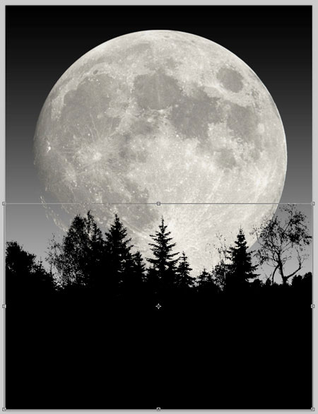 Примените масштабирование к изображению деревьев, расположив, как показано на скриншоте ниже.